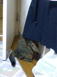 制服のスカートの中を覗いてる変態猫