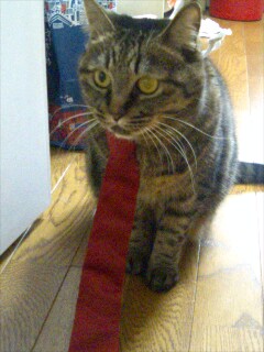 ネコタイをつけてみた猫。あっ打ち間違え